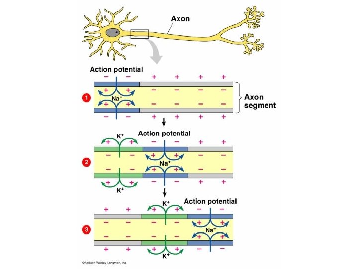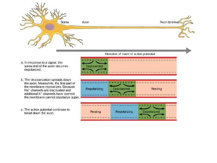 Repolarization • Changes occur behind moving action potential to restore the resting membrane potential •