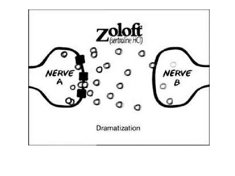 Antidepressants • Zoloft is part of a class of drugs called selective serotonin reuptake inhibitors, or • SSRIs for short. SSRIs act on a specific chemical within the brain known as serotonin. This is one of several chemicals used to send messages from one nerve cell to another.