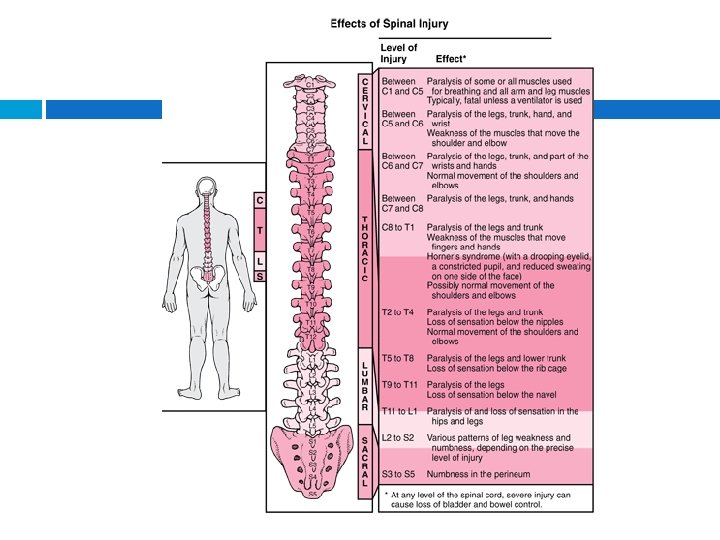 Structure of Spinal Cord 31 segments Each gives rise to a pair of spinal nerves Branch Cervical Nerves Lumbar Nerves to various parts of the body Enlargement: thickening in the neck to upper limbs Enlargement: thickening in lower back to lower limbs