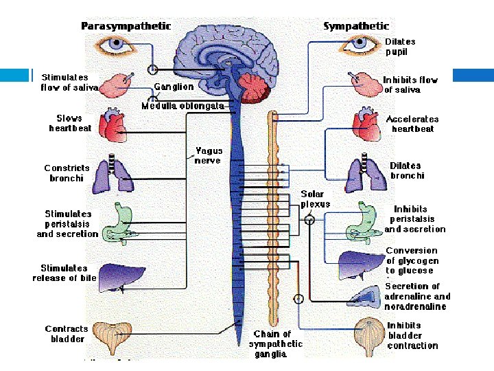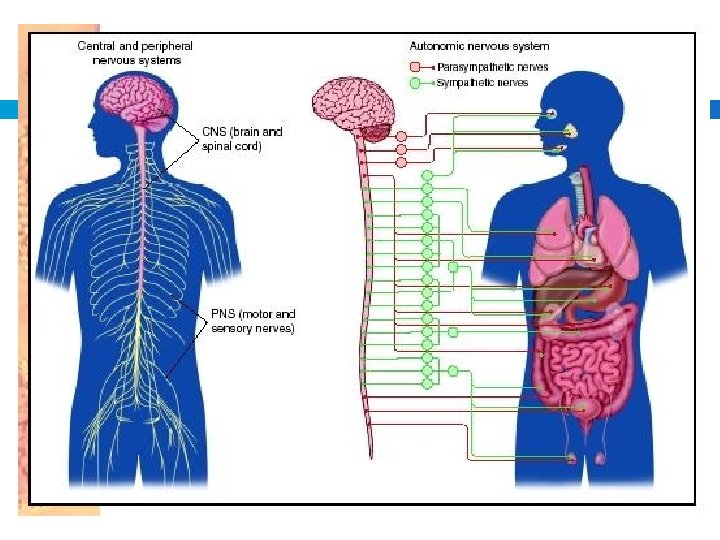 Autonomic Nervous System Functions without conscious effort Regulates visceral activities maintaining homeostasis Autonomic functions are reflexes controlled from nerve centers in the brain and spinal cord Sympathetic and parasympathetic Parasympathetic is most active