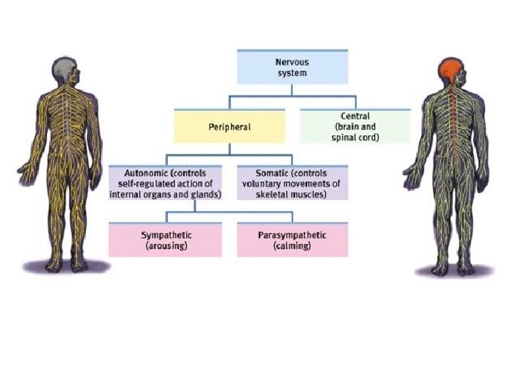 • In the Peripheral Nervous System (PNS), there are two divisions: • The somatic system controls voluntary actions – movements you choose • The autonomic system controls involuntary actions like heart rate and breathing