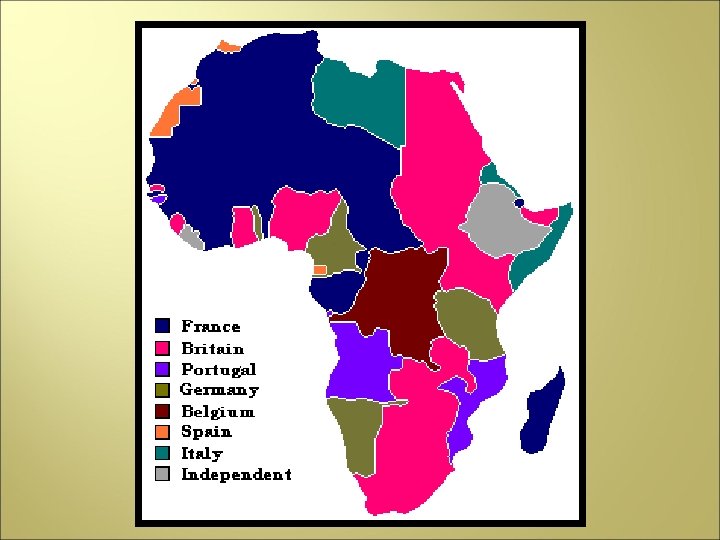 Partition of Africa was known as “dark continent” because so little was known about it Difficult to penetrate due to malaria and sleeping sickness from the tsetsi fly Medical breakthroughs & steamships, however, allowed Europeans to explore Europeans were able to exploit rivalries among different African tribes