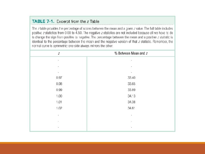Standardization, z Scores, and the Normal Curve Z-distribution – normal distribution of standardized scores Also called standard normal distribution