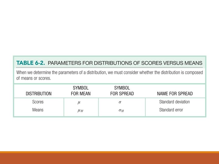 The Central Limit Theorem Distribution of sample means is normally distributed even when the population from which it was drawn is not normal! A distribution of means is less variable than a distribution of individual scores ◦ meaning SD is smaller… but we don’t call it SD