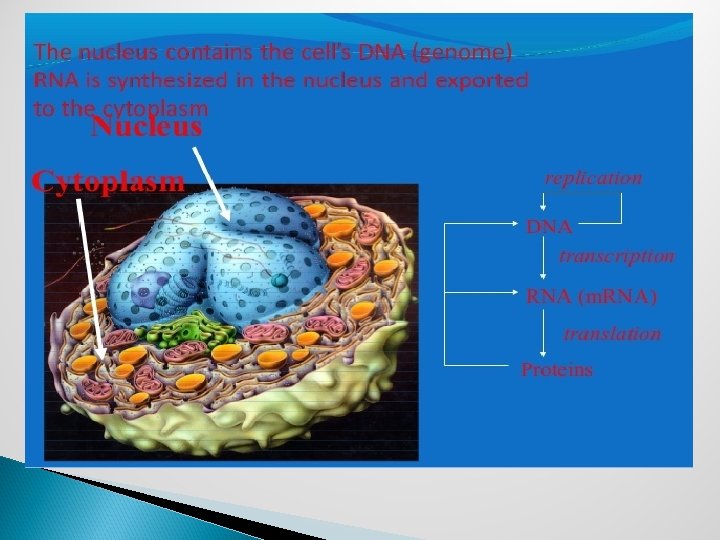 The distribution of nucleic acids in the eukaryotic cell DNA is found in the nucleus with small amounts in mitochondria and chloroplasts RNA is found throughout the cell