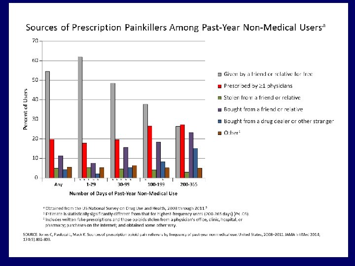 Signs of the Opioid Epidemic: Rise of Prescription Opioids • 2014, ~2 million Americans were dependent on prescription opioids. • 1 in 4 people who receive prescription opioids long term for non-cancer pain in primary care settings struggles SUD • Daily, >1, 000 people are treated in emergency departments for misusing prescription opioids
