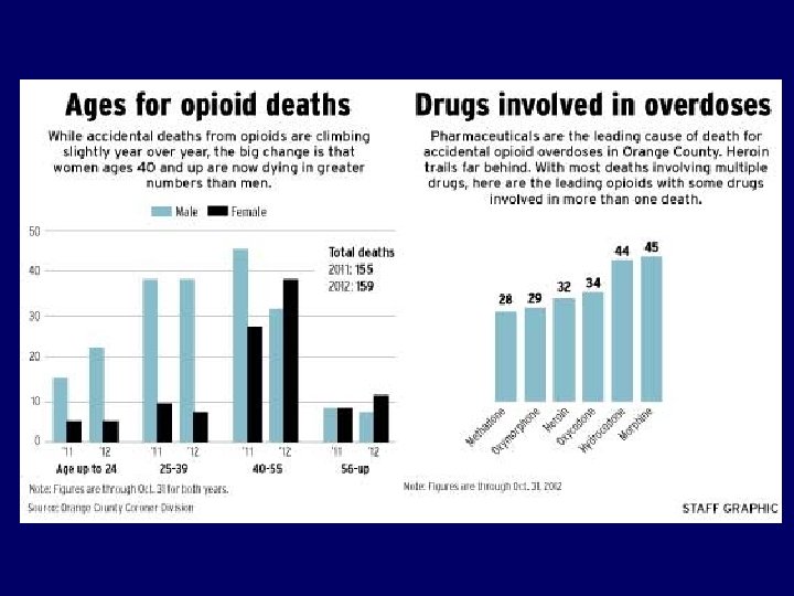 Signs of the Opioid Epidemic: More Deaths • Since 1999, the rate of overdose deaths involving opioids (prescription opioids and heroin have quadrupled • More deaths than MVAs • > 30, 000 per year • ~78 opioid overdoses per day • ~4500 deaths in California / year