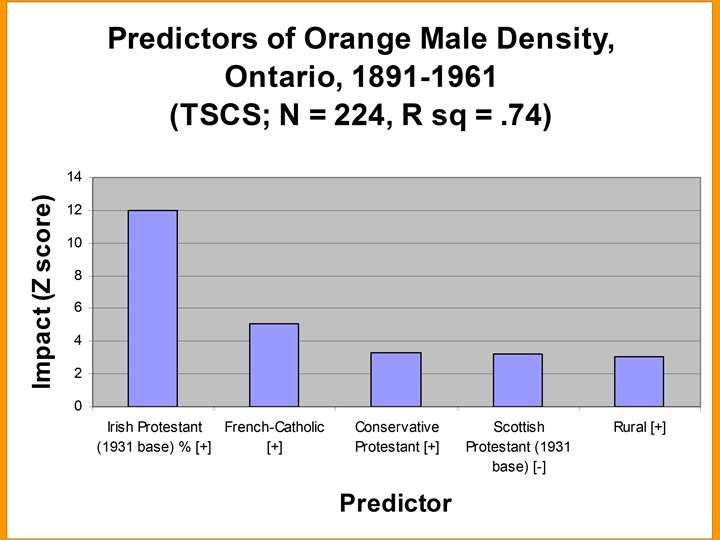 Social & Political Influence. Canada • • • Politically influential by 1867 Many Tory MPs were members Involved in most national issues 1/3 of Ontario legislature was Orange in 1915 1/3 of Ontario males were members during 1870 -1920 • Hundreds of thousands in the wider Orange fraternity as late as the 1950's