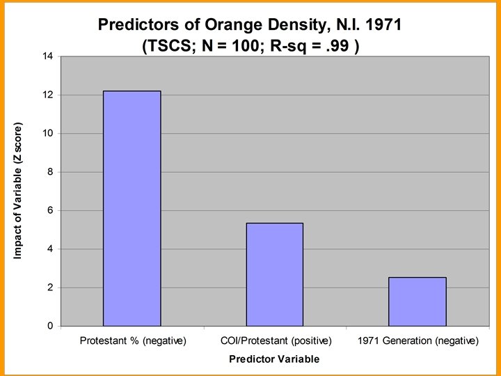 Conclusion • Orangeism is a worldwide movement historically strongest in Ulster and eastern Canada • Orangeism’s rise owed a lot to both Irish. Protestant emigration and inter-ethnic conflict with a Catholic ethnie. Relatively Catholic counties in N. I. , Ontario and Scotland have more ‘Orange’ Protestants