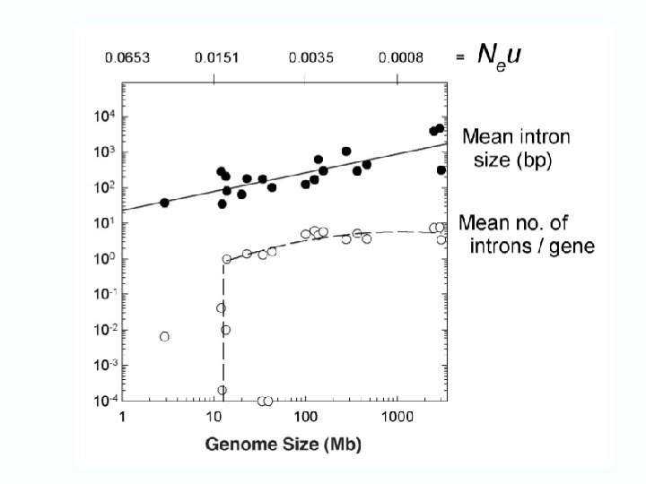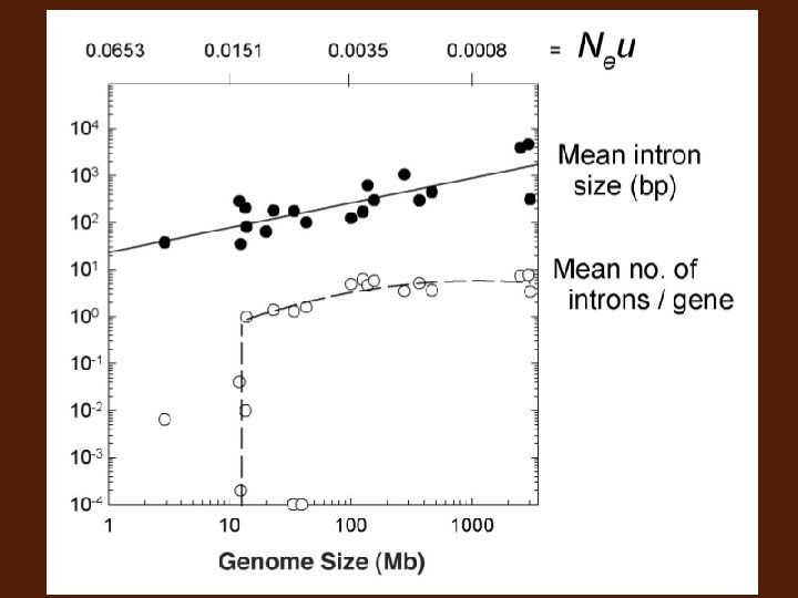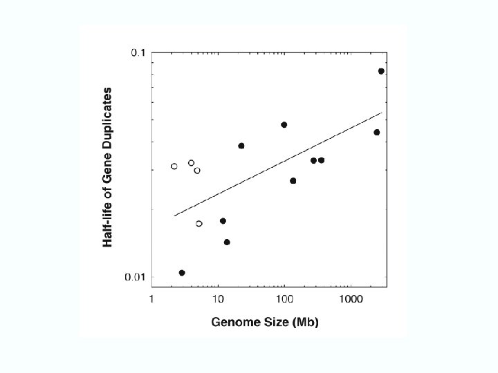 How does smaller Ne lead to genome complexity? • Gene duplication occurs at roughly the same rate (probably due to the same mechanism across all taxa) but … • Duplicated genes are lost much more slowly in smaller populations • Pairs of partially degenerated genes can fulfill a single function
