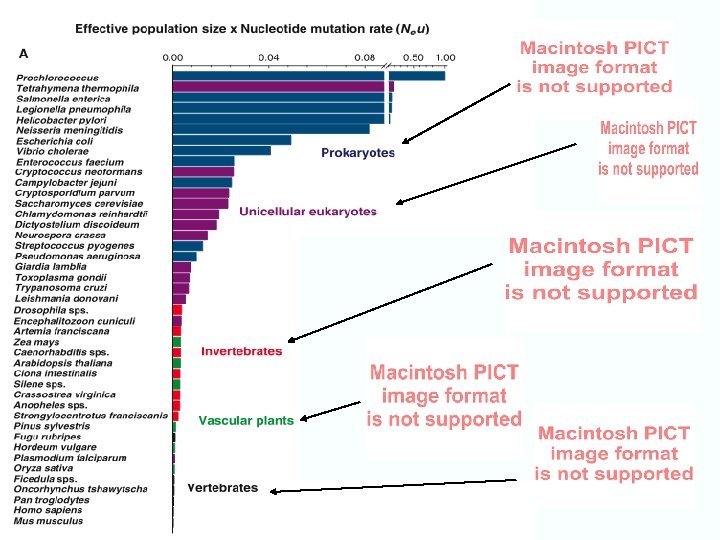 Effective population size (Ne) • How “faithfully” gene frequencies are transmitted across generations. – Can be estimated from the rates of mutation at silent sites (read: neutral mutations). – # of neutral mutations = 4 Neu – Where u is the mutation rate per nucleotide • We can roughly measure u independently for taxa, allowing us to estimate Ne