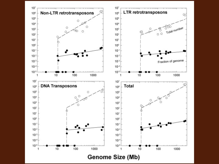 Increasing genomic complexity in eukaryotes over evolutionary time. 2) Transposons