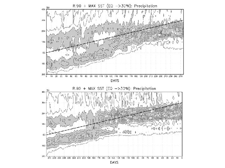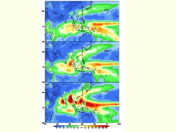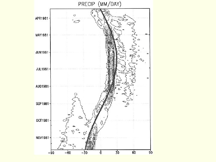 The importance of studying the ITCZ (conti. ) 6. 7. 8. 9. The location of the ITCZ is where tropical cyclogenesis occurs and where the tropical cyclones travel before veering to higher latitudes. The current GCMs have considerable amount of difficulty in simulating the ITCZ precipitation correctly. This has been a bottle-neck problem for climate forecast. Even when a successful ITCZ simulation is obtained, one wants to see that the success comes from understanding rather than luck, in order to achieve further improvement. The ITCZ study has led to new insight into the monsoon and monsoon onset.