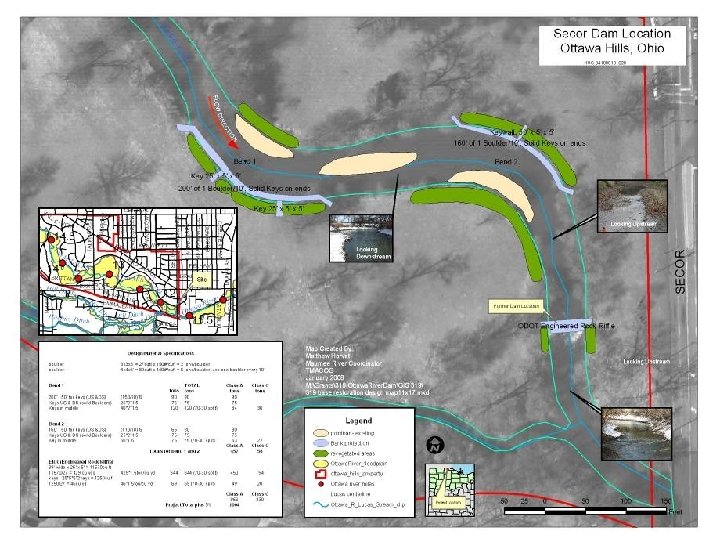 t Limit This project will encompass the bends immediately upstream and downstream of the former dam site US Projec Existing riffle constructed by ODOT DS Project Limit At the request of the Village of Ottawa Hills we did not work in this bend even though the vertical bank is 7 ft tall and the water over 7 ft deep!! Conceptual Design Illustration of Restoration Site by Matt Horvat of TMACOG