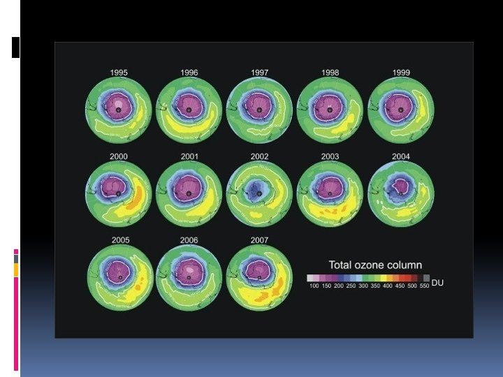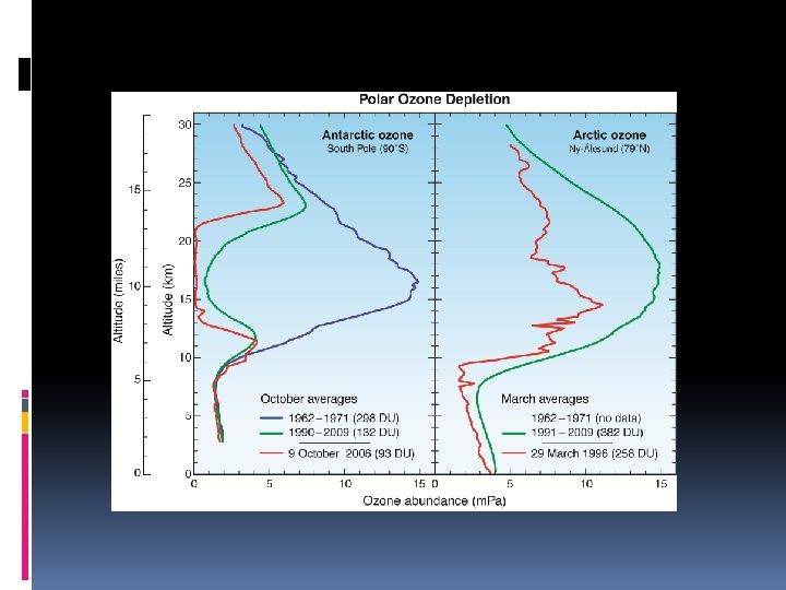 Destruction of ozone in reaction to CFC and UV radiation CCl 3 F – UV = Cl- CCl 2 F Cl + O 3 Cl. O + O 2 O 3 + UV O 2 + O O + Cl. O Cl + O 2 2 O 3 3 O 2 Destruction of the ozone reaction nitrogen monoxide (NO) as a catalyst and UV radiation NO - O 3 = NO 2 – O 2 O 3 + UV O 2 + O NO 2 + O NO + O 2 2 O 3 3 O 2