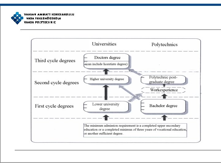 Uniform degree structures • 2 levels: Bachelor and Master • First cycle: lower university degree, polytechnic degree • Second cycle: higher university degree, polytechnic postgraduate degree • Third cycle: Doctors degree