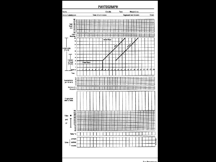 Partograph • Use partograph to monitor progress of labour at all women admitted to labour ward • Women should not be admitted for labour ward until in active labour • Active labour is when women have regular contractions (3 -5 in ten minutes) and cervix is 4 cm. dilated