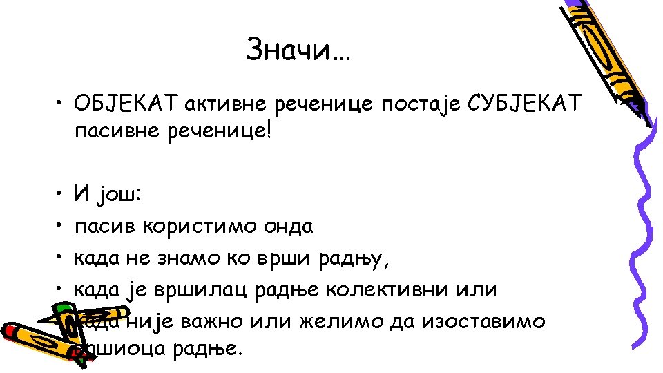 Present Simple Passive • Глагол “to be” у садашњем времену + партицип прошли (трећа колона или наставак –ed ако је глагол правилан). • Harley-Davidsons are known all over the world. • Levi’s jeans are made in the USA. • Most of the world’s tigers are found in India.
