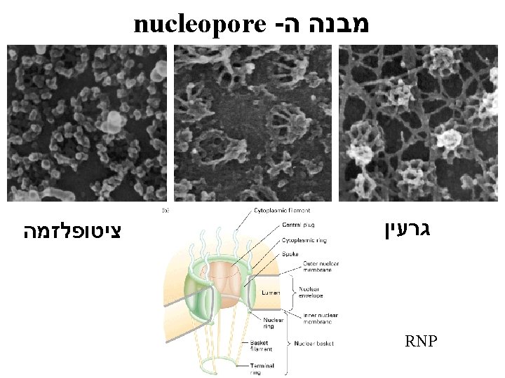 m. RNA transport from the nucleus to the cytoplasm m. RNA גרעין תעלה Nucleopore ממברנת הגרעין ציטופלזמה