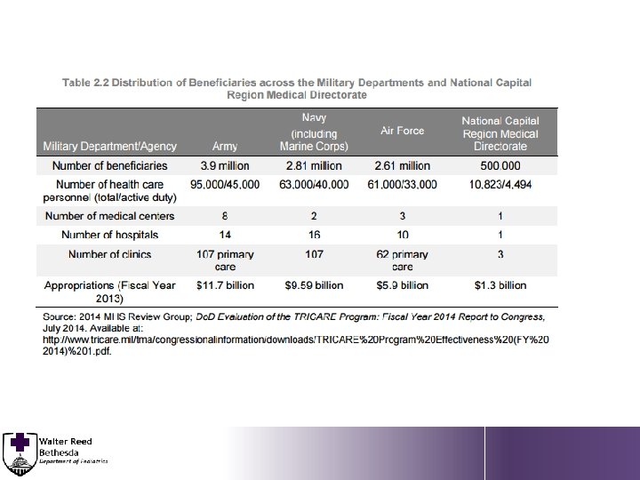 Base Realignment and Closure - 1995 • Two residencies combined as the National Capital Consortium • NICU and Newborn Services – NNMC • PICU, Inpatient Pediatrics – WRAMC • Subspecialty Clinics – WRAMC (mostly) • Primary Care Clinics - Both