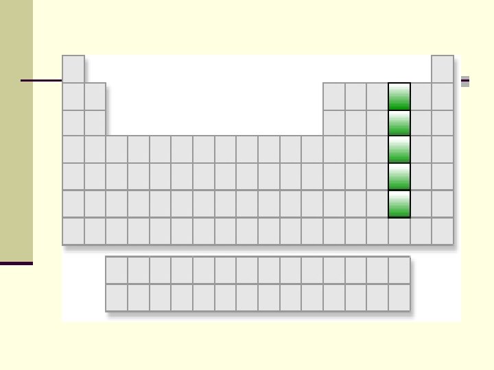 Groups = vertical columns n Elements in the same group have similar chemical and physical properties!! n (Mendeleev did that on purpose. ) Why? ? • They have the same number of valence (outer energy level) electrons. • They will form the same kinds of ions (charged atoms).