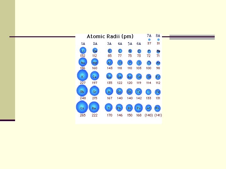 Atomic Radius decreases across a period n. Pull of the nucleus: There are more electrons and more protons within the same energy level=more pull n. Sheilding effect is not a factor