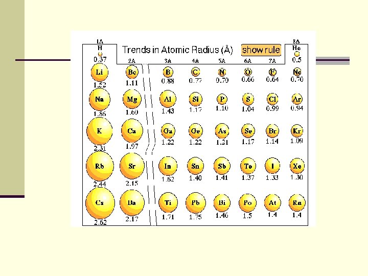Shielding effect n As the atomic number increases down a group, the energy level increase (Li, level 2, Cesium, level 6) so… n The increase in energy levels shields electrons from the pull of the nucleus.