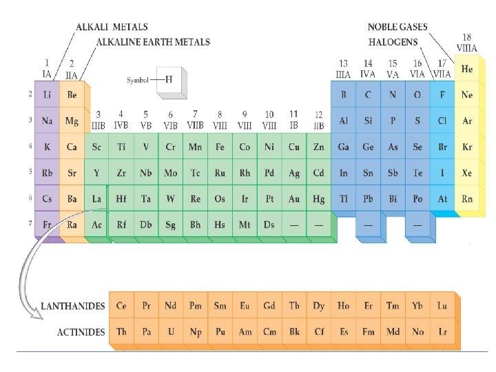 Periodic Table • The periodic table is divided into vertical columns and horizontal rows. – Each vertical column is called a group (or family). – Each horizontal row is called a period. • There a total of 18 groups and 7 periods.