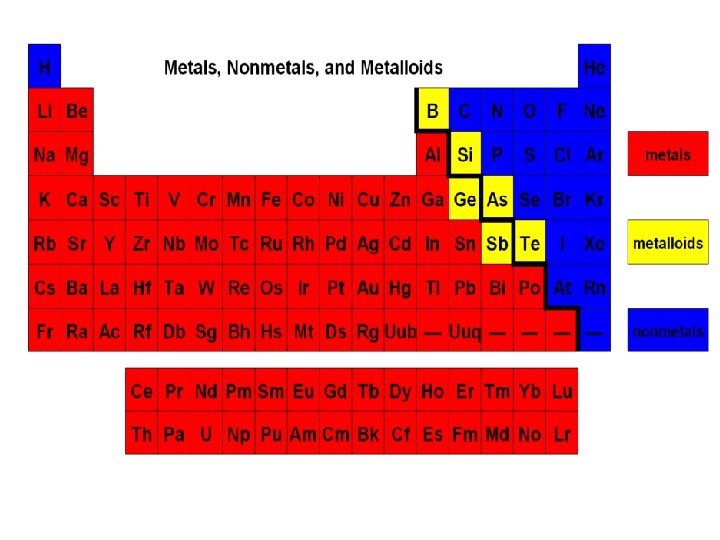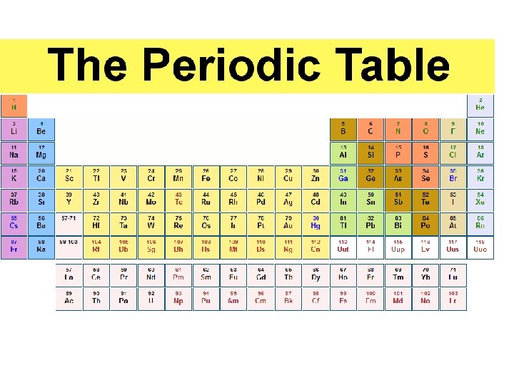 Lets make a periodic table! You will be given 2 -3 cue cards with a chemical symbol on them. Fill in all missing information Blue cards are metals, yellow are metalloids, and pink are non-metals! Create a large periodic table on the whiteboard!