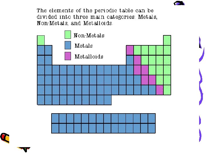 3 Categories of the Periodic Table 1. Metals 2. Non-metals 3. Metalloids