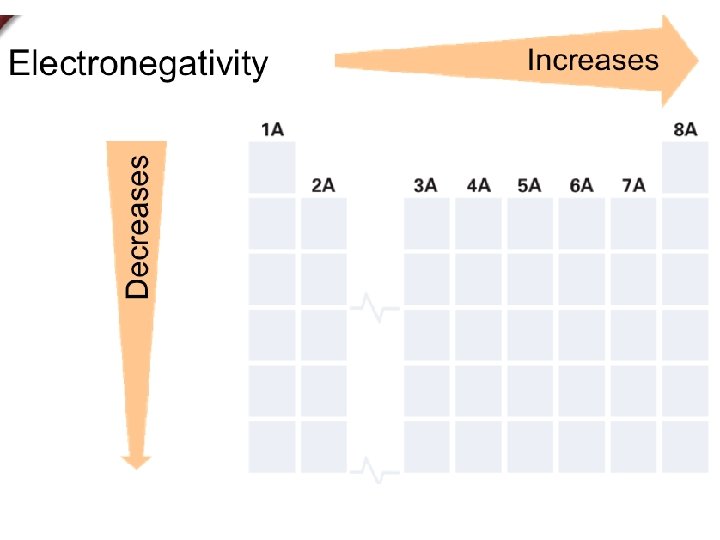 + Electronegativity n The ability of an atom to attract electrons. n These values are derived from ionization energy and follow the same trend.