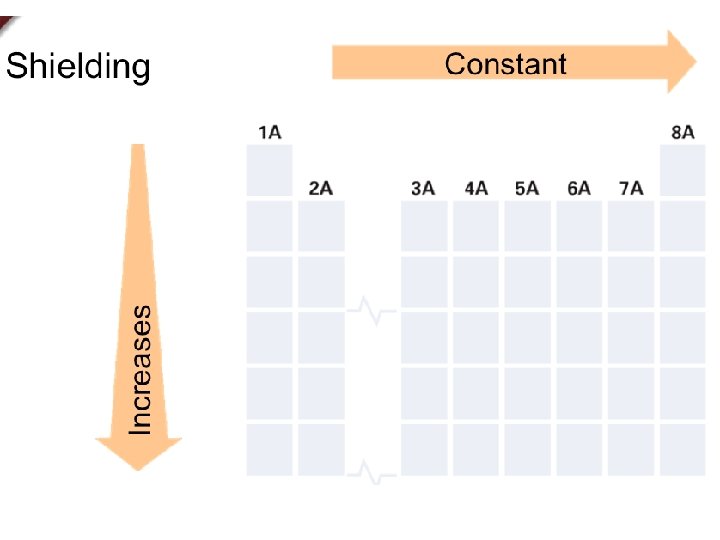 + Page 11 in your notes Coulombic Attraction Across a Period atoms have the same number of principle energy levels. As the number of protons and valence electrons increase, so does the attraction resulting in a smaller radius. 3 P Lithium Rings = 2 Protons = 3 Valance e- = 1 4 P Berylium Rings = 2 Protons = 4 Valance e- = 2 5 P Boron Rings = 2 Protons = 5 Valance e- = 3 6 P Carbon Rings = 2 Protons = 6 Valance e- = 4