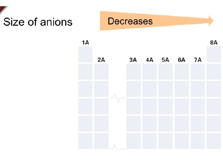 + Sizes of Ions n Cations are always smaller than the atoms which they form. n Anions are always larger than the atoms from which they form.