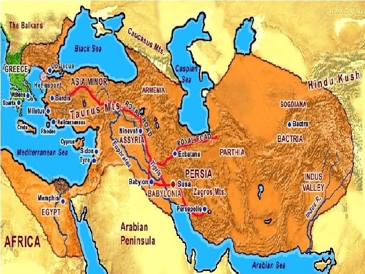 Achaemenid Empire (558 -330 BCE) �Migration of Medes and Persians from central Asia, before 1000 BCE �Indo-Europeans �Capitalized on weakening Assyrian and Babylonian empires � POWER VACUUM �Peak under Darius (r. 521 -486 BCE) �Ruled Indus to the Aegean �Capital Persepolis