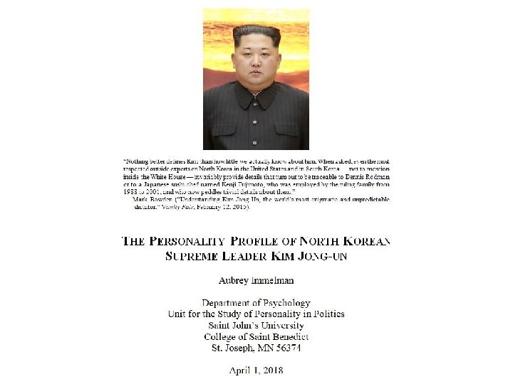 The Personality Profile of Kim Jong Un Abstract
