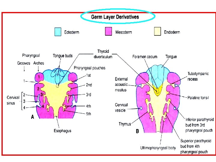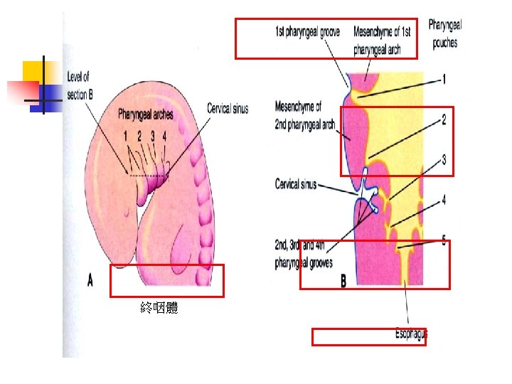 Pharyngeal pouch咽囊 耳咽隱窩 5 wk pharynx 6 wk Ultimopharyngeal body parafollicular cell 終咽體