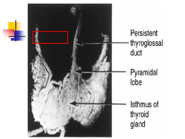 Development of the thyroid gland 4 wk 甲狀腺憩室 5 wk 甲狀腺舌管