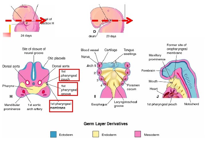 Pharyngeal arch: component External : pharyngeal groove Internal : pharyngeal cleft (pouch) groove arch Neural crest cell mesenchyme in the head and neck