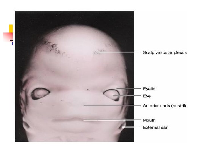 Development of face: 4 -8 wks, human appearance 5 facial primordia