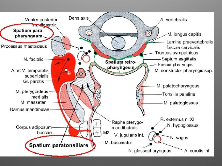 SPATIUM PARAPHARYNGEUM (side view) Epipharynx Spatium parapharyngeum A. carotis interna. Tonsillectomia!!