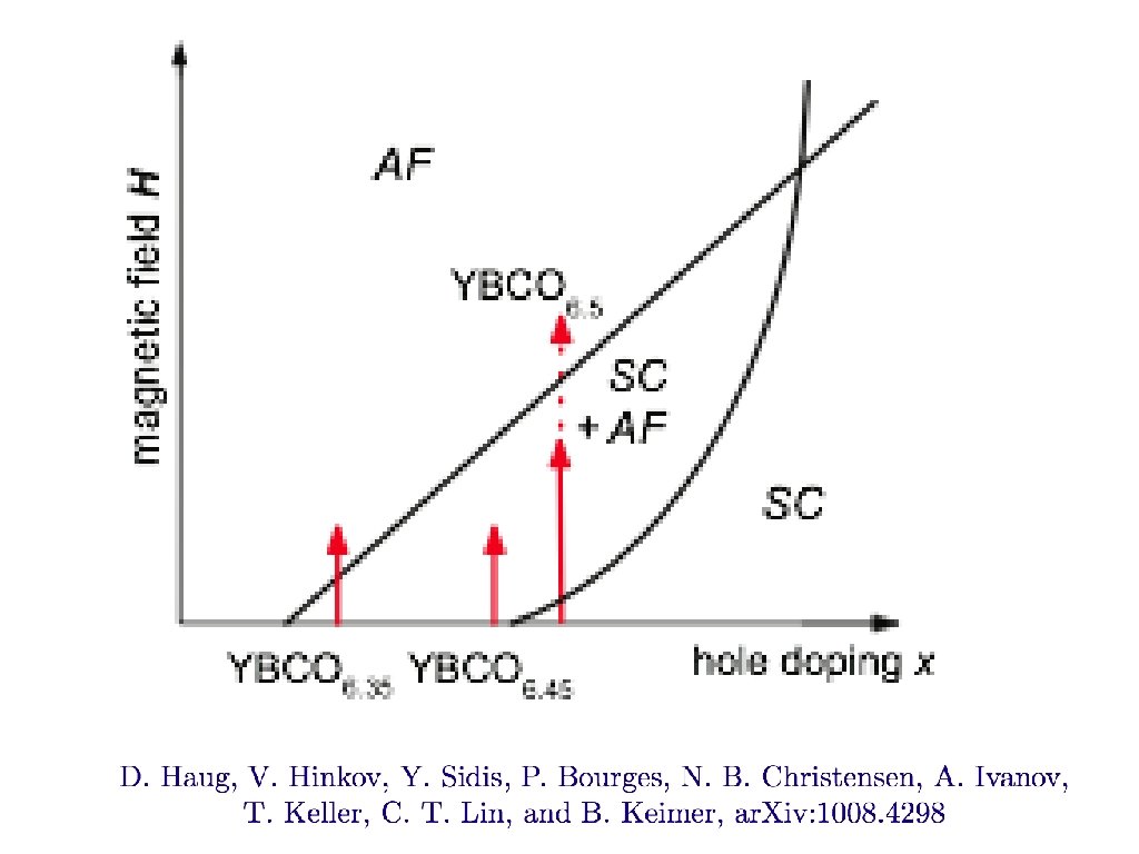 T* Many experiments have presented evidence for the predicted green quantum phase transition line from SC to SC+SDW in a magnetic field