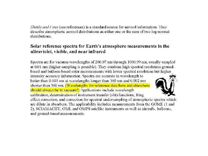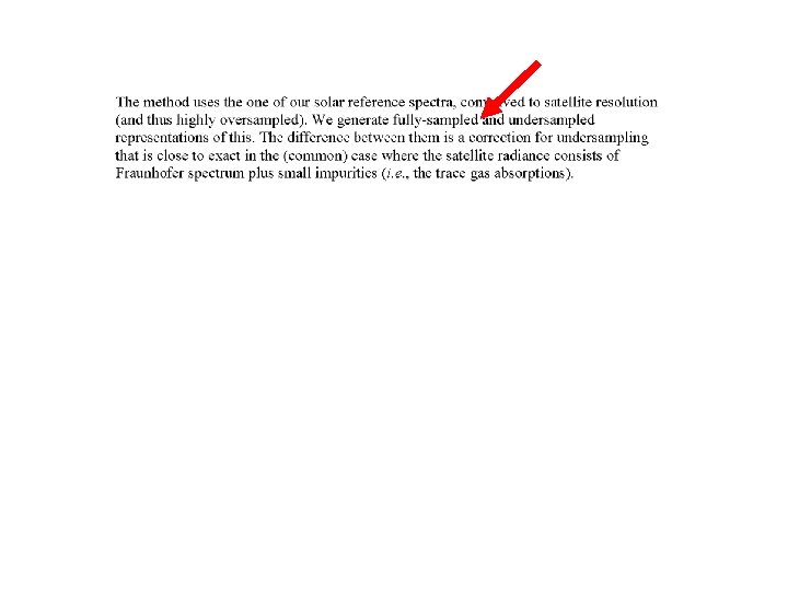 Spectral Undersampling Correction Chance, K. Analysis of Br. O measurements from the Global Ozone Monitoring Experiment. Geophys. Res. Lett. 25, 3335 -3338, 1998. Slijkhuis, S. , A. von Bargen, W. Thomas, and K. Chance, Calculation of undersampling correction spectra for DOAS spectral fitting, Proc. ESAMS'99 - European Symposium on Atmospheric Measurements from Space, 563 -569, 1999. Chance, K. , T. P. Kurosu, and C. E. Sioris, Undersampling correction for array-detector based satellite spectrometers, Applied Optics 44, 12961304, 2005. Solar Reference Spectrum: Chance, K. V. , and R. J. D. Spurr, Ring effect studies: Rayleigh scattering, including molecular parameters for rotational Raman scattering, and the Fraunhofer spectrum, Applied Optics 36, 5224 -5230, 1997.