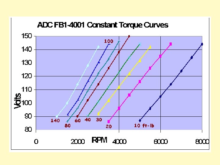 Motor Comment Remember that power is the product of torque and rpm. With the ADC FB 1 -4001, the 200 A continuous rating is a torque limit of about 30 ft-lbs. At 30 ft-lbs, it takes about 144 V for a motor speed of 5500 rpm. This is about 31 hp. Actually, I 2 R losses in battery, controller and wiring will reduce the actual voltage available to the motor. At 80% DOD with a 200 A load, the maximum voltage at the motor may be as low as 120 V for only 4500 rpm. [25 hp]