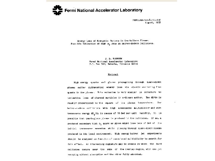 Jet Quenching ! Jetcorrelationsinin Jet central Gold-Gold. proton-proton reactions. Awaysidejet Away disappears reappears forfor particles Strong back-top. T > 2 Ge. V pparticles Me. V back peaks. T>200 Azimuthal Angular Correlations
