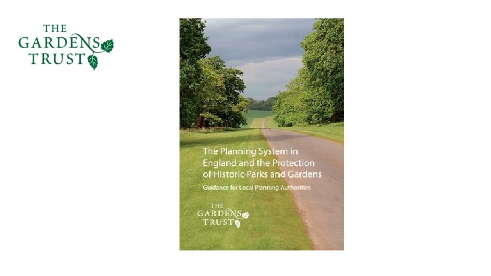 The Planning System in England Wales: progressing the protection of parks and gardens Sarah Dickinson Board member and Vice Chair Conservation Committee The Gardens Trust