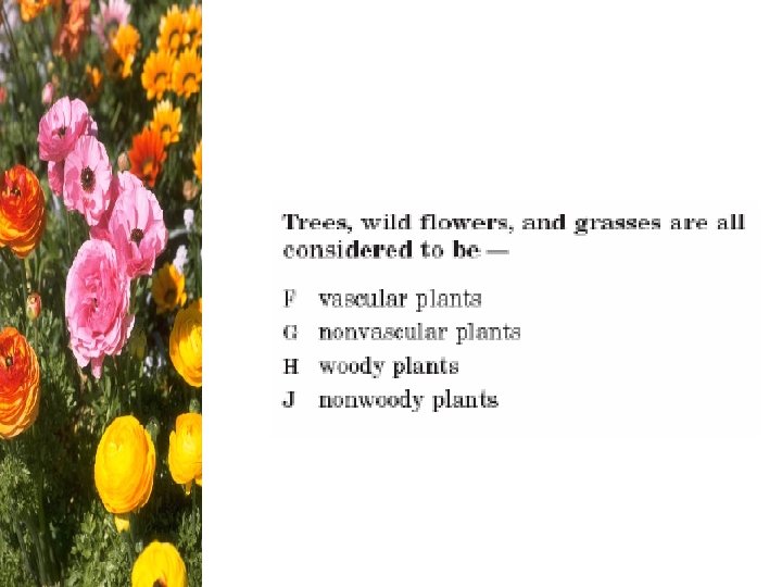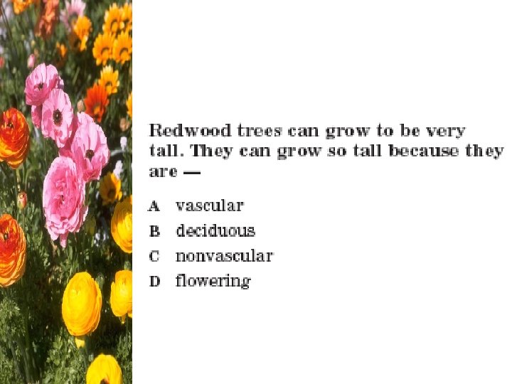 Plant Classification • Vascular Plants can further be classified as – Gymnosperms – cone bearing plants, e. g. pine trees – Angiosperms – flowering plants, e. g. roses