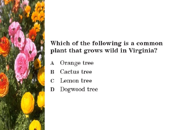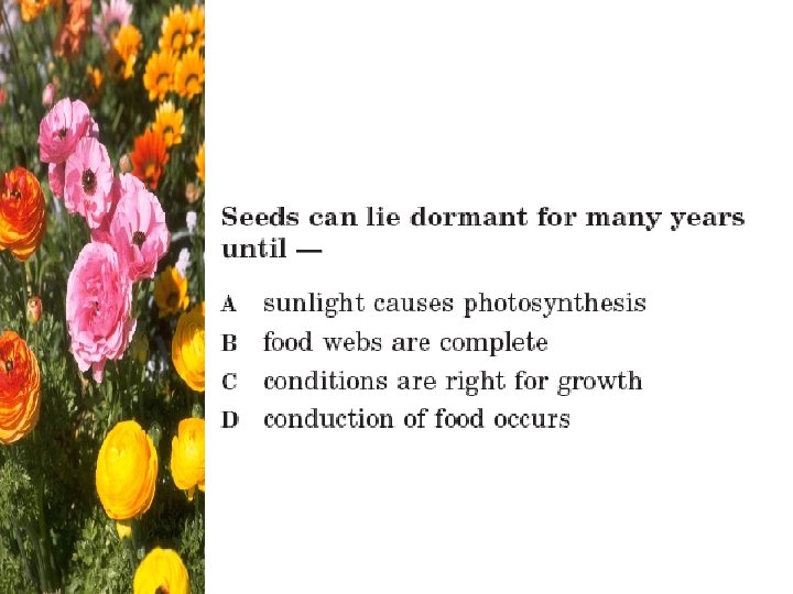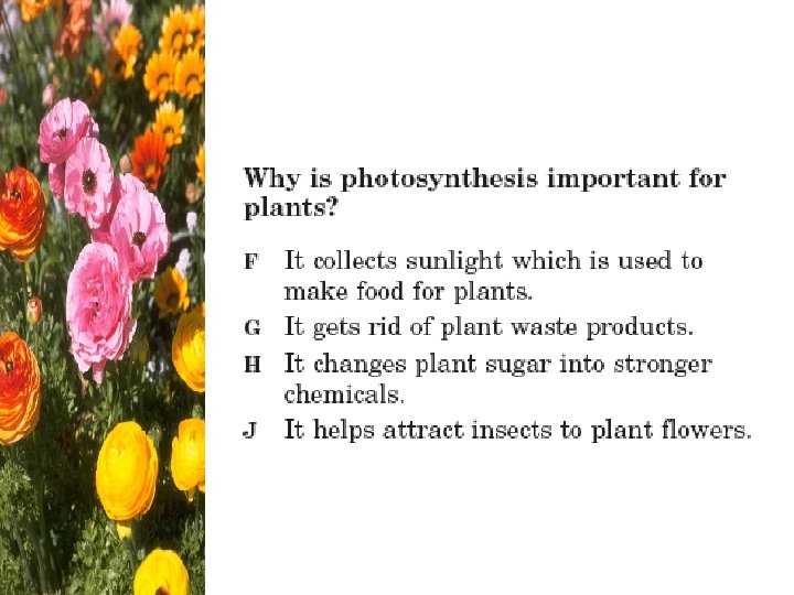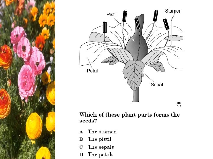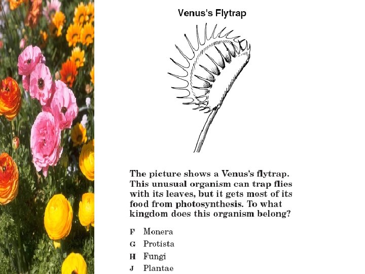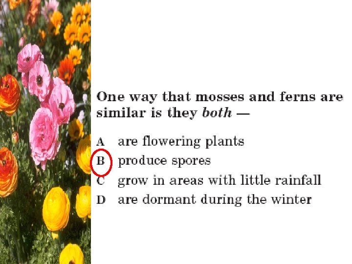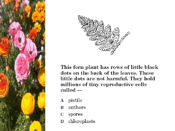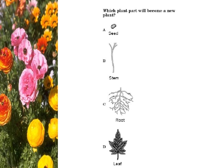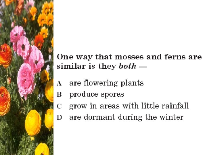 Plant Classification • Angiosperms are classified as – Monocots: flowering plants with parallel veins and petals in multiples of 3, e. g. Tulip – Dicots: flowering plants with branching veins and petals in multiples of 4 or 5, e. g. Rose • Regardless of type, flowers are great for sexual reproduction. Flowers attract animals that can help pollinate the plant.