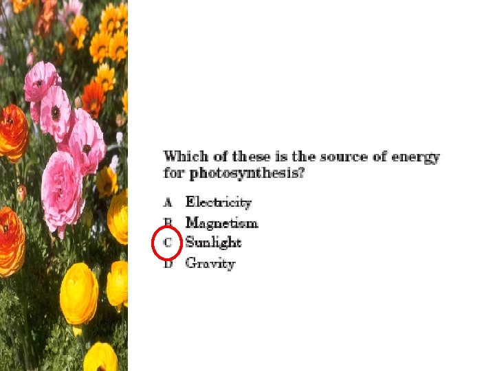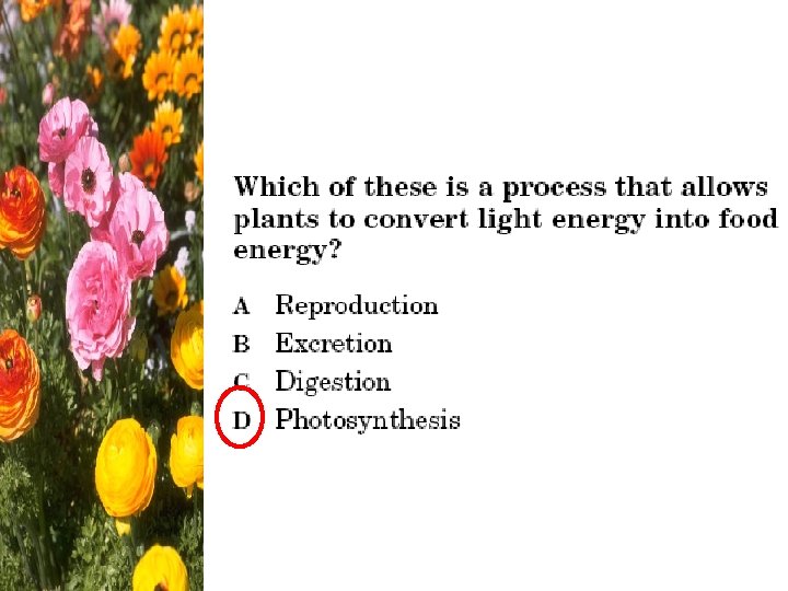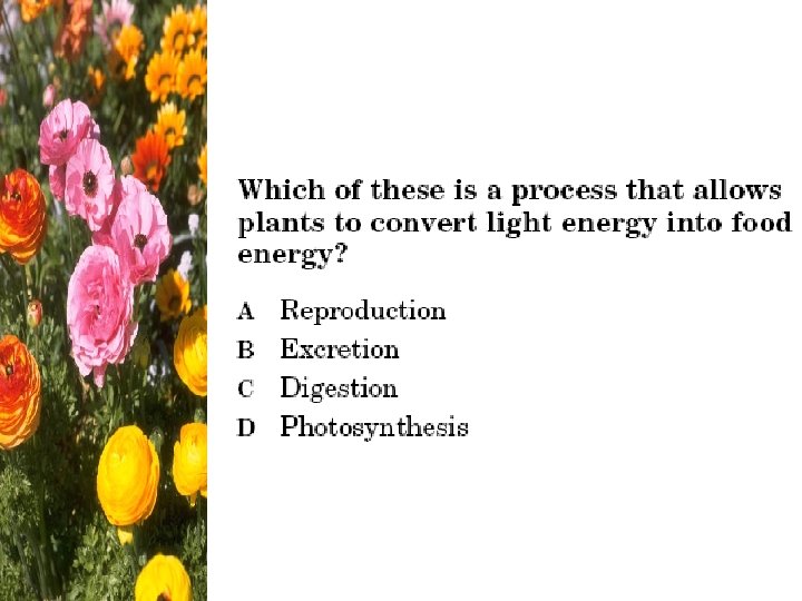 Photosynthesis • Plant cells produce their own food through a process called photosynthesis. • Photosynthesis allows plants to convert light energy into food energy.