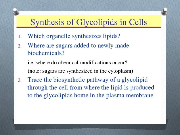 Glycolipids and glycoproteins O Glyco- prefix means sugar O These molecules serve as cellular identification tags O Allow cells to sort themselves into tissue types O Allow cells of the immune system to recognize self and nonself