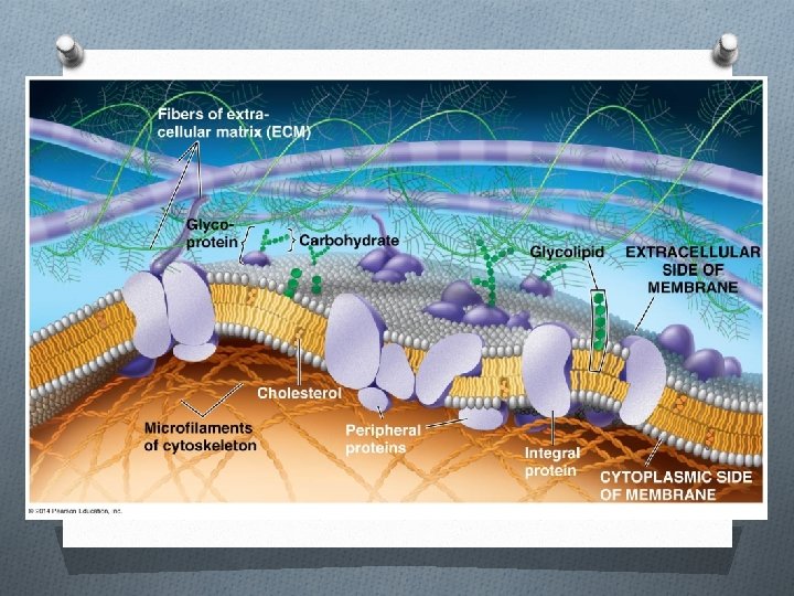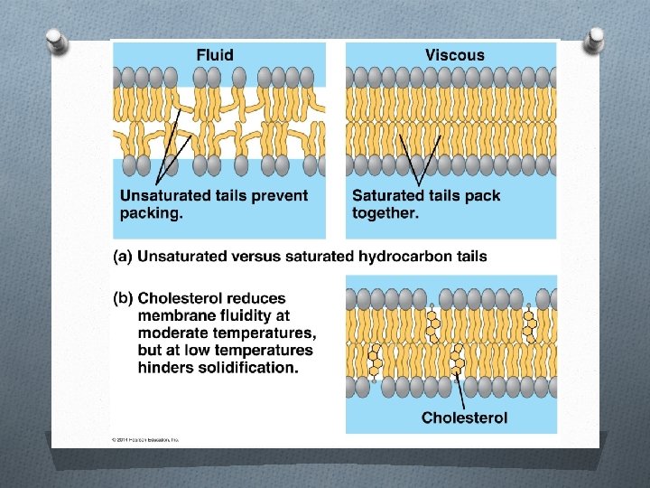 Fluid mosaic model O Basic model O Presence of describes the unsaturated fatty acid membrane as fluidtails in phospholipids like, allowing – increases fluidity movement of proteins O Presence of within it cholesterol molecules O It is actually much in the membrane – more structured than ‘buffers’ fluidity that, with a variety of factors affecting the O Membrane proteins location & motion of may be anchored to membrane-bound the cytoskeleton proteins and other macromolecules Animated tutorial: http: //www. pol 2 e. com/at 05. 01. html